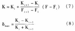輪流量傳感器的儀表系數K與Q的關系近似線性的單調函數(見圖2)。因此,在對檢定結果進行處理時,直接將各檢定點的檢定結果以Fi、Ki的形式存入卡箍式渦輪流量計的數值運算部分,不必對其儀表系數取平均值。在使用渦輪流量傳感器進行流量測量時,根據渦輪流量傳感器的信號頻率F,即可在以上檢定結果中檢索各F,值,找出滿足F,≤F≤F的Fi、Fi+1(i=1,2,.,.n-1),n是該渦輪流量傳感器的流量檢定點數;若信號頻率F=Fi或F=Fi+1,則相應的Ki或K.i+1即為所需的儀表系數;若信號頻率Fi